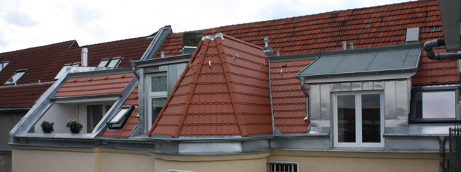 Die Gestaltungsmöglichkeiten sind durch die Vielfalt der zur Verfügung stehenden Materialien und Verarbeitungstechniken breit gefächert (Ton, Schiefer, Aluminium ectr.). Wir führen sämtliche Dacharbeiten für Sie aus und tragen dafür Sorge, dass die Dachfläche Ihrer Wahl mit schon vorhandenen Balkonen, Dachfenstern oder Dachgauben perfekt harmonisiert oder bauen diese auf Wunsch gleich mit ein.